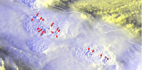 • Umělé letní bouře bývají často tvořeny na rozhraní dne a noci, asi aby to pravidelné tvoření nebylo na satelitních snímcích tak nápadné. Obě zde zobrazené bouře byly tvořeny brzo ráno.